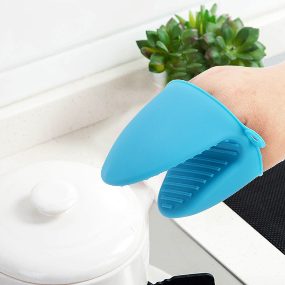 (blue) 1PCS Microwave Oven Glove Silicone Heat Insulation Mitts Anti-slip Anti Scalding Pot Bowl Holder Clip Gloves Kitchen Baking Tool