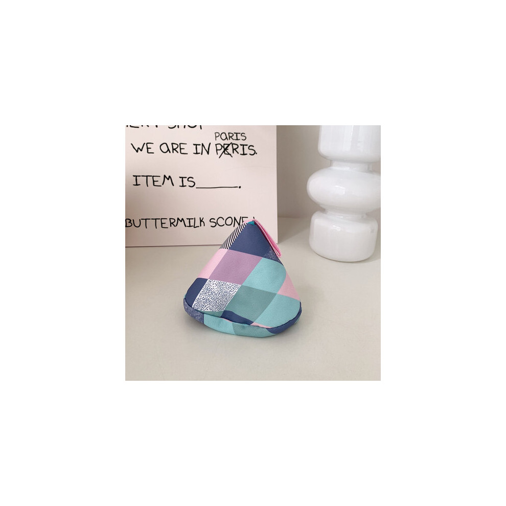 (Blue checkered) Cute Triangle Heat Insulation Pad Anti Scalding Pot Cap Microwave Oven Cloth Pot Cover Clip Kitchen Gadgets