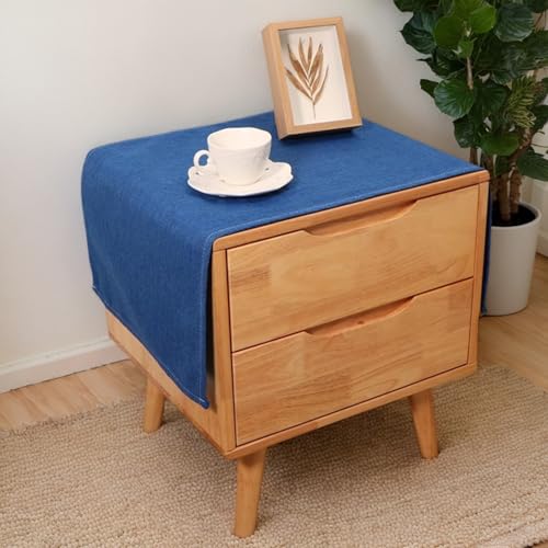 Rectangular Tablecloth for Bedside Table Solid Rustic Tablecloth Linen Fabric Dustproof Wipeable Table Toppers for Refrigerator TV Cabinet Microwaves Home Decoration 45 * 115 CM Navy Blue