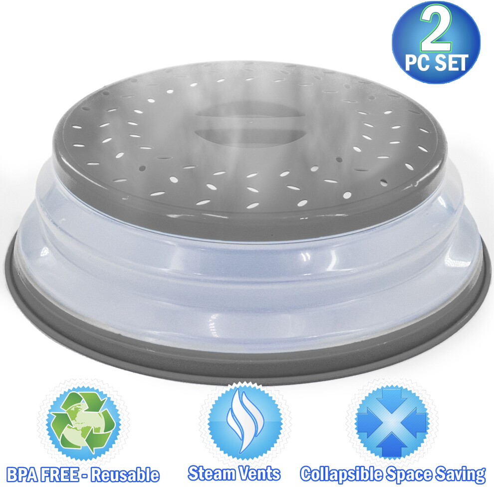Microwave Anti-Splatter Cover - Collapsible, BPA-Free, Dishwasher Safe, Heat-Resistant, Fits Most Microwaves (Gray, 2pc)
