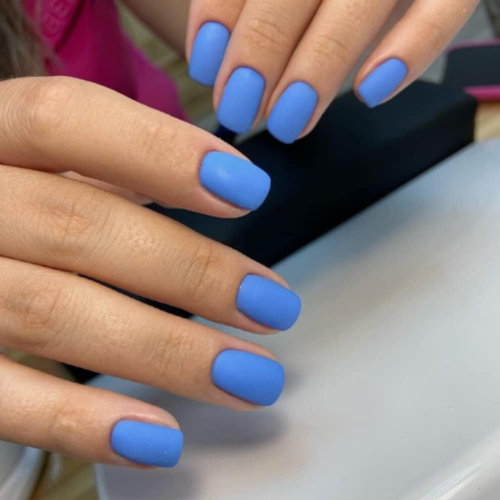 Baby Blue Press on Nails Short KQueenest Matte Acrylic Nails Press on with Solid Color Classic Fake Nails Set for Women Lady Daily Routine in 24PCS