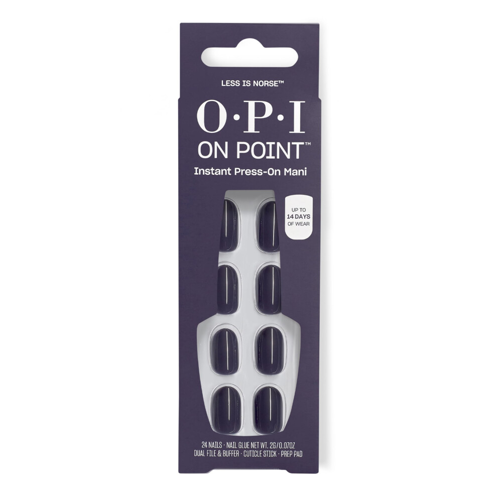 OPI On Point Less is Norse | Short Round Dark Deep Blue Press On Nails | 24 Count with Nail Glue | Long Lasting Reusable Non-damaging | Fall 2025 S