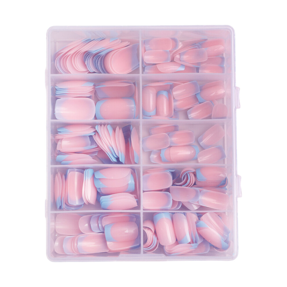 120x/Box Blue French Tip Nails Press On Nails Full Cover False