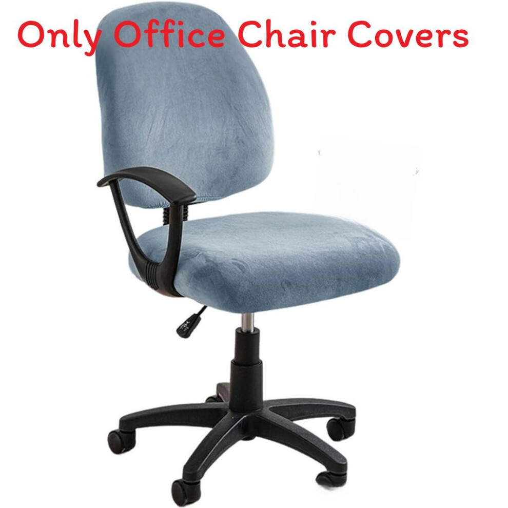 (Blue) Stretch Office Computer Chair Seat Covers Velvet Soft Plush Fabric