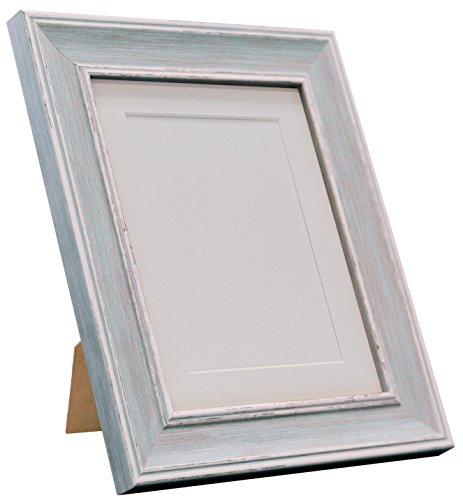 FRAMES BY POST Scandi Distressed Blue Picture Photo Frame with White mount 45 x 30 cm For Image size 14 x 8 Inch