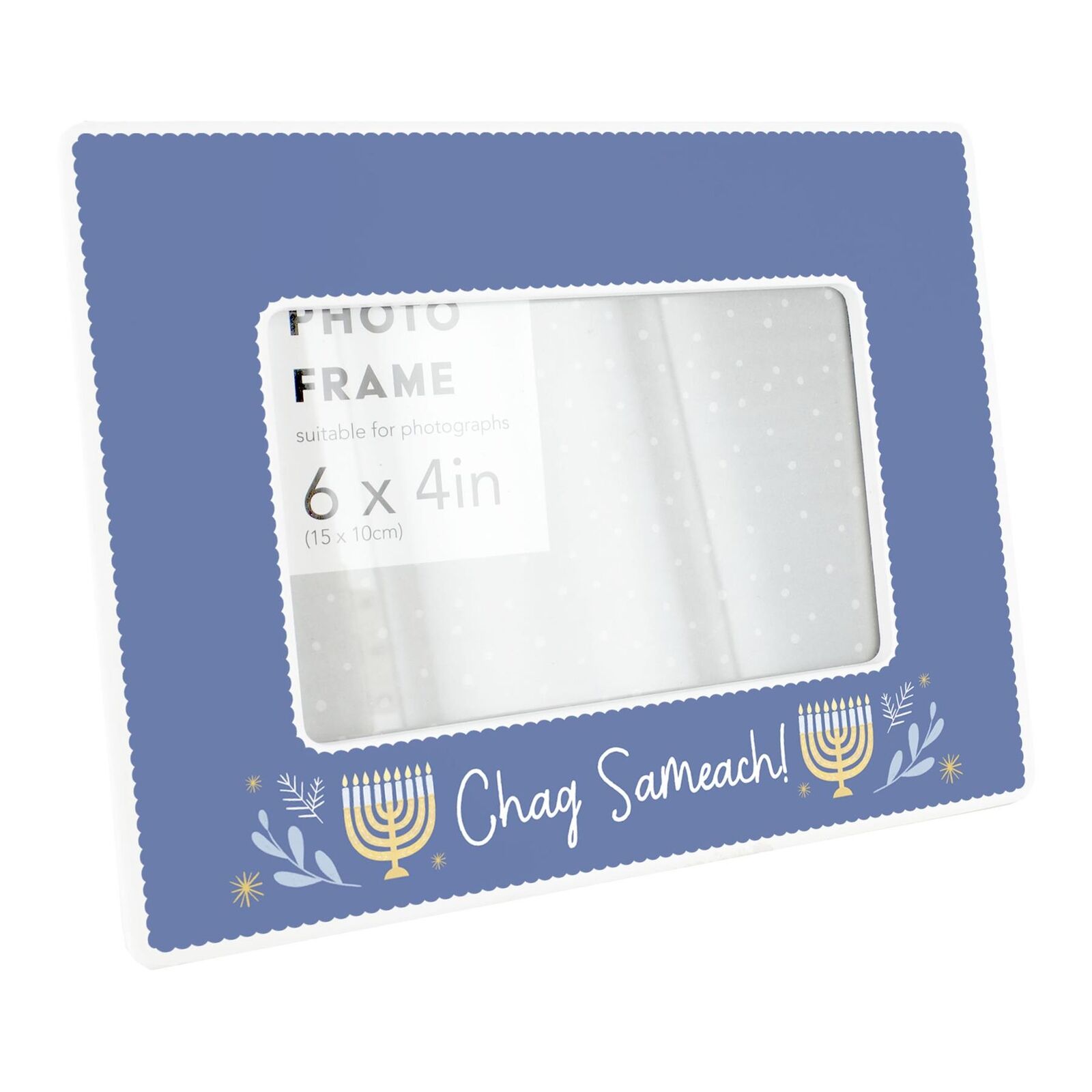 Hag Sameach Hanukkah Jewish Festival Blue Ceramic Tile Picture Frame