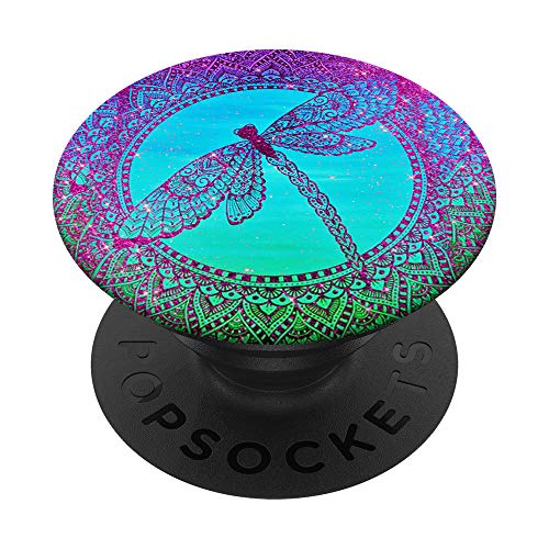 Dragonfly on Purple Deep Sky Blue Mandala PopSockets PopGrip: Swappable Grip for Phones & Tablets