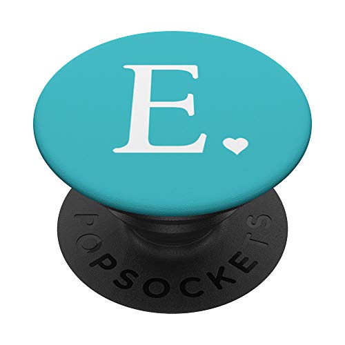 Heart, White Letter E Initial Monogram, Baby Blue, Teal Cute PopSockets Grip and Stand for Phones and Tablets