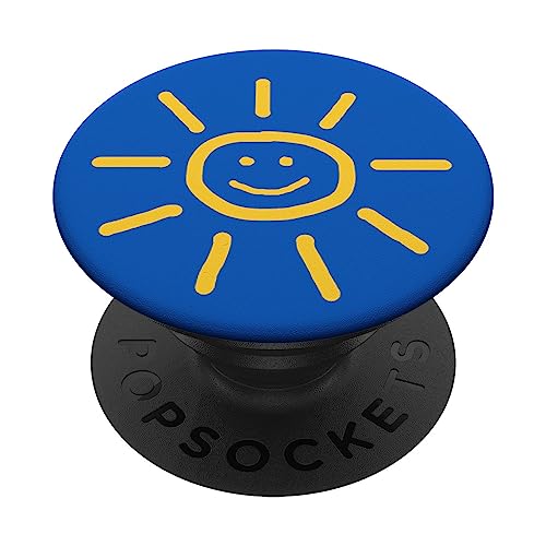 Cute Hand-Drawn Sun Drawing in Yellow on Blue Background PopSockets Adhesive PopGrip