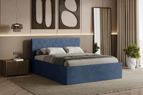 Radius Upholstered Bed 160/180 x 200 cm - Modern Double Bed with Storage Box & Padded Headboard (Dark Blue (Noble 77), 160 x 200 cm)