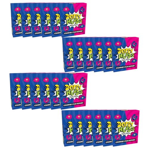 Dopey Heads | Dopey Bytes | HALAL | Crunchy Bytes | Blue Raspberry | Strawberry | Tiny Candy | Pack of 24 | Weight 40g (1.41 oz) Each - Strawberry & Blue Raspberry