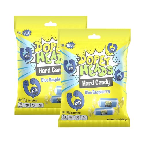 Dopey Heads | HALAL | Blue Raspberry | Original Hard Candy | Pack of 2 | Weight 198g (7 oz) Each - Blue Raspberry Hard Candy