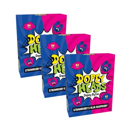 Dopey Heads | Dopey Bytes | HALAL | Crunchy Bytes | Blue Raspberry | Strawberry | Tiny Candy | Pack of 3 | Weight 40g (1.41 oz) Each - Strawberry & Blue Raspberry