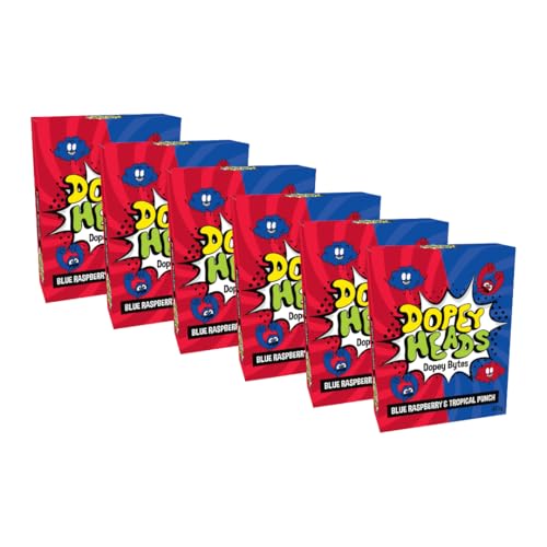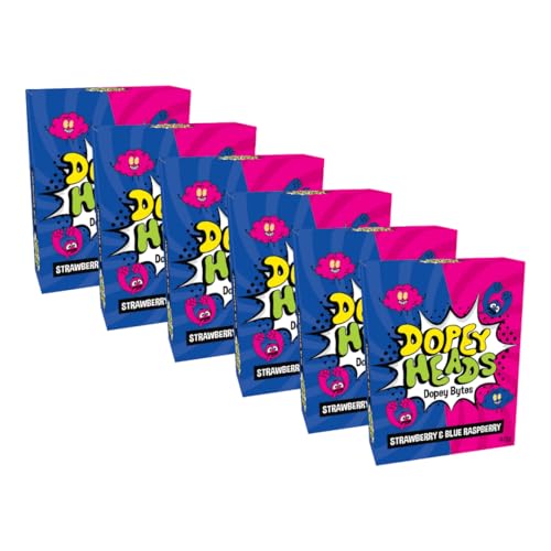 Dopey Heads | Dopey Bytes | HALAL | Crunchy Bytes | Blue Raspberry | Strawberry | Tiny Candy | Pack of 6 | Weight 40g (1.41 oz) Each - Strawberry & Blue Raspberry