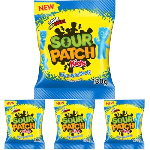 Sour Patch Kids Blue Raspberry, Soft & Chewy Sour Then Sweet Candies, 130 g Bag (Pack of 4)
