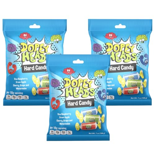 Dopey Heads | HALAL | Assorted Hard Candy | Five Flavours | Blue Raspberry | Apple | Cherry | Grape | Watermelon | Pack of 3 | Weight 198g (7 oz) Each (Assorted Hard Candy)