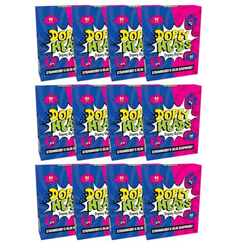 Dopey Heads | Dopey Bytes | HALAL | Crunchy Bytes | Blue Raspberry | Strawberry | Tiny Candy | Pack of 12 | Weight 40g (1.41 oz) Each - Strawberry & Blue Raspberry
