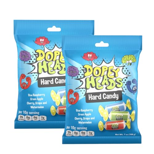 Dopey Heads | HALAL | Assorted Hard Candy | Five Flavours | Blue Raspberry | Apple | Cherry | Grape | Watermelon | Pack of 2 | Weight 198g (7 oz) Each (Assorted Hard Candy)