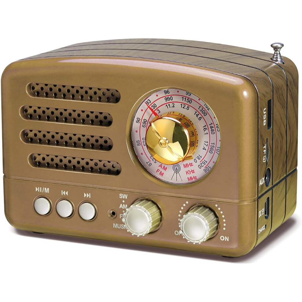 (Blue) Portable Vintage Retro AM FM Radio bluetooth Speaker TF Card USB MP3 Music Player