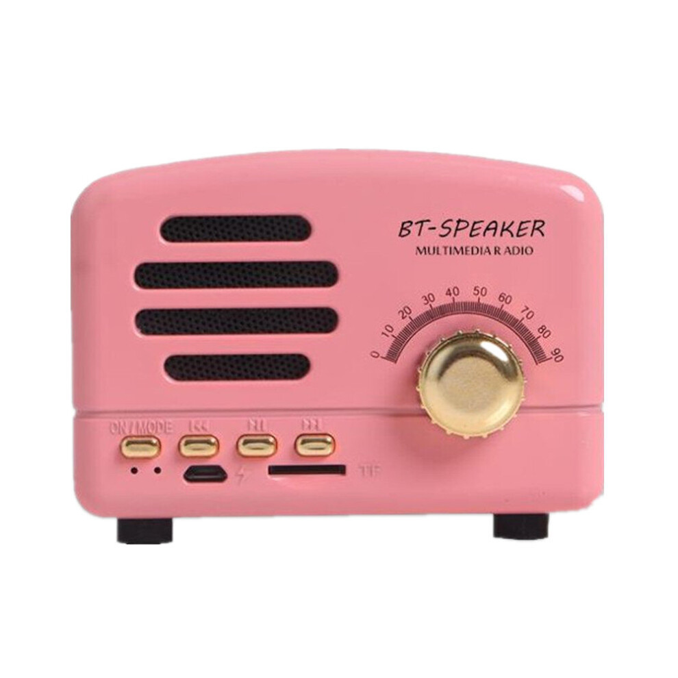Retro Portable Mini Bluetooth Speaker Wireless Speakers Super Bass Music Loudspeakers Support TF Card FM Radio Pink