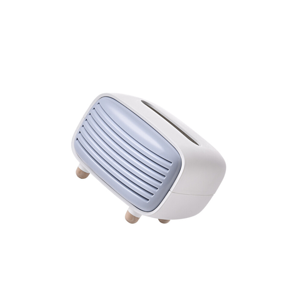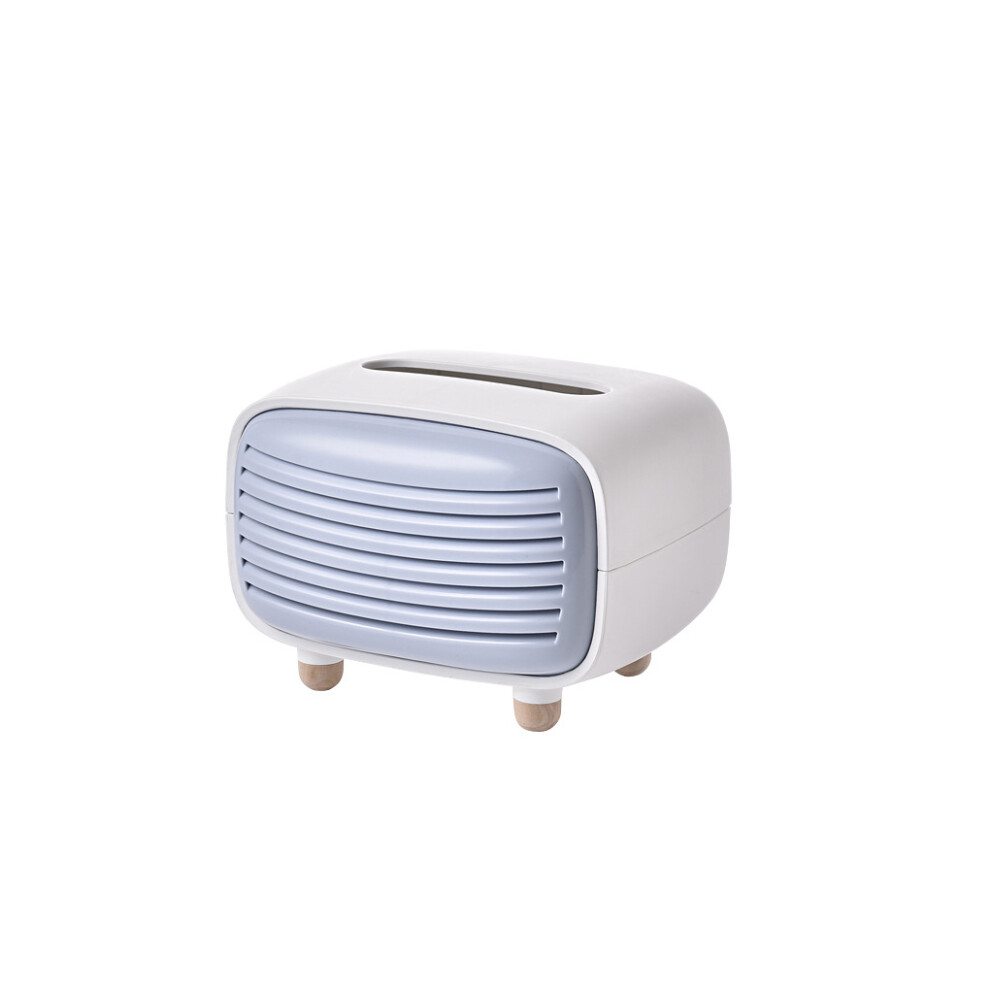 (Blue) Retro Radio Box Paper Case Tabletop Dispenser Napkin Holder Storage