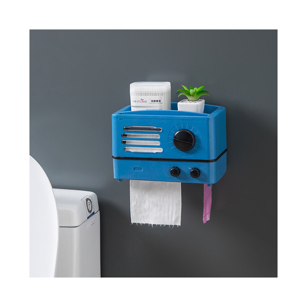 (a-Blue) Waterproof Wall Mount Toilet Paper Holder Shelf Tray Roll Tube Storage Box Creative Tissue Home Retro Radio Design