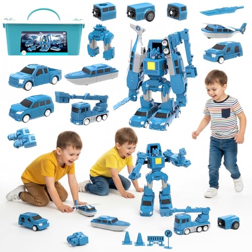 AtomDream Tech Transforming Robot Toy Car for Boys Ages 3-7 – 2-in-1 Action Figure Car Toys, Friction Powered Transforming Vehicle, Educational Robot Toy, Birthday Gift for Kids Boys Girls (Blue)