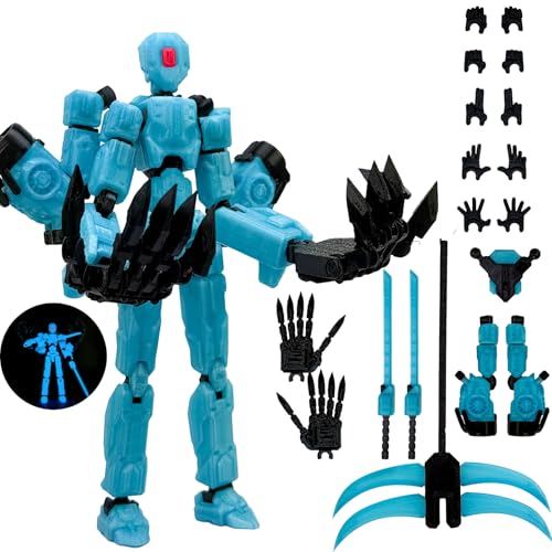 8Inch T13 Action Figure Assembly Completed, T13 Multi-Jointed Movable Robot Action Figure Set,Collectors Desktop Decorations for Game Lovers Toys (Luminous Blue)