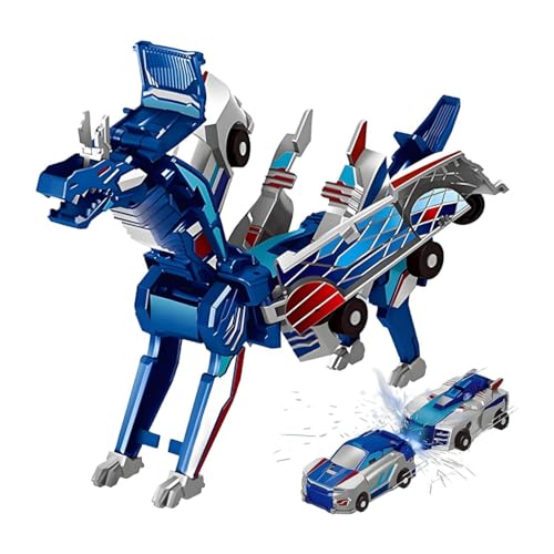 Dragon Transforming Car Robot Toys, Magnetic Transforming Car - 2 in 1 Transformings Cars, Dragon Dinosaur Collision Transformings Cars, Pegasus Pterosaur Unicorn Toys for Kid Birthday (Blue)