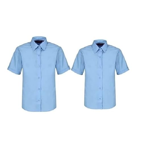 Trutex 2 Pack Girls Short Sleeve School Shirts (3-16+ Years) Girls School Shirts, Standard Fit School Shirts Girls, Non-Iron Short Sleeve School Shirts for Girls - Genuine School Uniform Blue