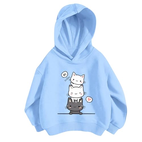Kids Hoodie Sweatshirts Girls Boys Oversized Hoodie Plain White T-Shirt Kids Cute Cats Pullover Jumper Long Sleeve Hooded Sweatshirt Back to School Shirts Tops (Sky Blue, 5-6 Years)