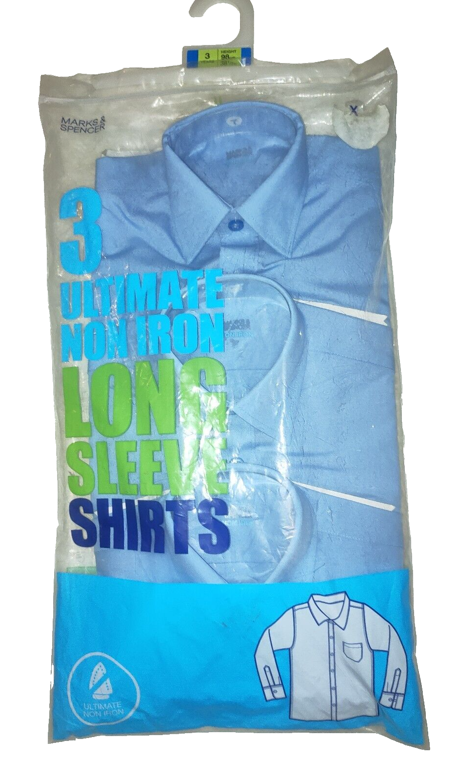 Age 3 Years 3 Pack School Shirts Blue M&S Ultimate Non Iron Long Sleeved