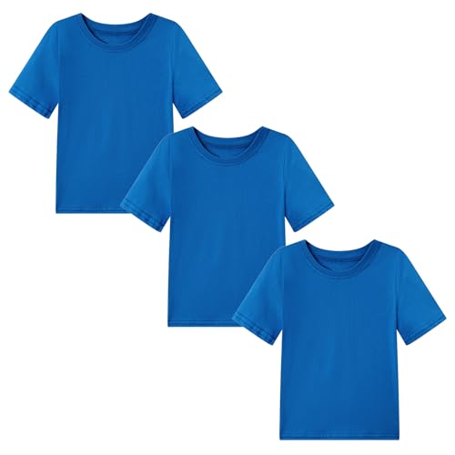 Smazero Kids Plain T-Shirt Cotton Crew Neck Girls Boys T Shirts Summer Short School PE Tee Tops for Children 5-13 Years 3 Packs Blue