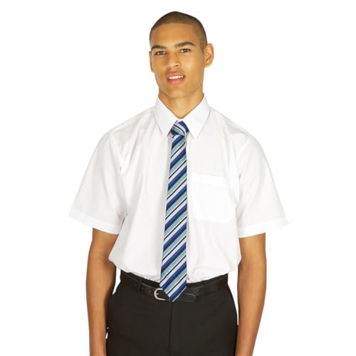 B Mens Boys School Uniform Long/Short Sleeves Plain Blue White Shirts (15-16 Years (Collar Size 14.5"), White Boys Short Sleeve)