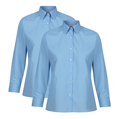 Trutex Girls Blue School Shirts Long Sleeve – 2 Pack School Blouses for Girls, Non Iron School Uniform Shirts, Standard Fit Girls School Shirt (Age 15–16)