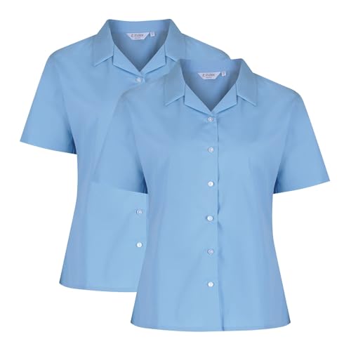 Trutex 2 Pack Girls Short Sleeve School Shirts with Revere Collar (3-16+ Years), Standard Fit Girls School Shirts, 2 x Girls Shirts, Non-Iron School Shirts Girls - Genuine School Uniform Blue