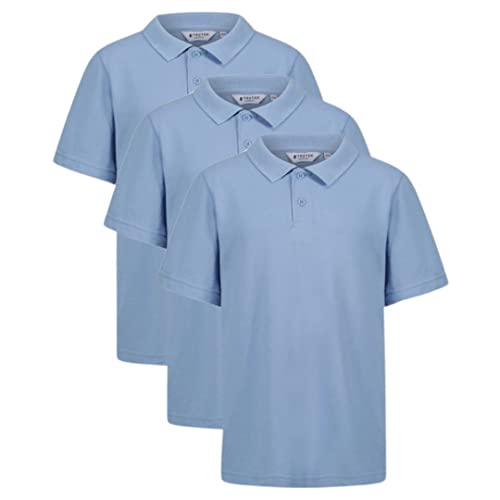Trutex Basics 3 Pack Regular Fit, Short Sleeve School Polo Shirts for Boys and Girls (2-16 Years), Unisex Kids Polo Shirts Boys and Girls, Ideal for PE Kits - Genuine School Uniform Sky Blue