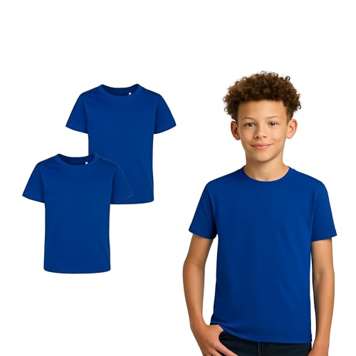 Boys & Girls T-shirts For Kids (Pack of 2) | Cotton, Plain, Short Sleeve, Comfortable & Durable Tops in MultiColor | Best For School, Sports, Travel & Outdoor Activities | Royal Blue , 7-8 Yrs