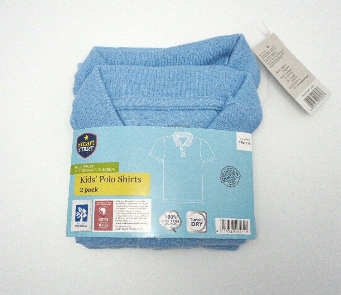 Blue 2 Pack Kids' Polo Shirts School Uniform Age 4-6 yrs 110/116 Pure Cotton