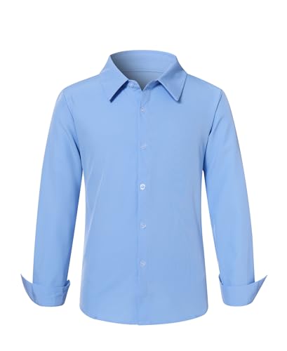 Loveternal Boys Shirts Long Sleeved Light Blue Classic Collar School Shirts Boy Solid Button up Party Prom Wedding Shirt 7-8 Year
