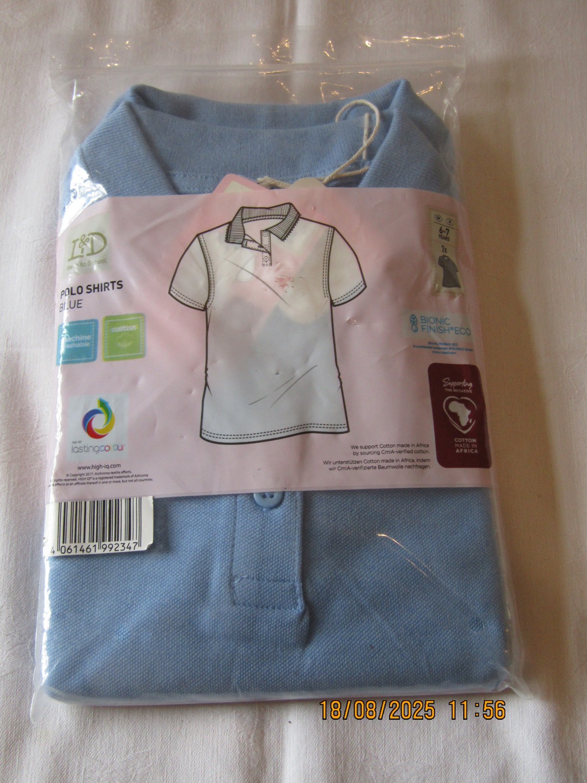 NEW 2 x LILY & DAN SCHOOL POLO SHIRTS IN BLUE AGE 6-7 YEARS.