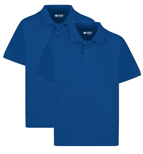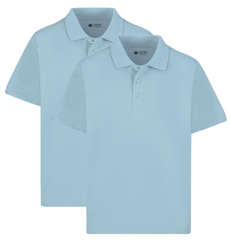 Amazon Essentials Boys' Short-Sleeve School Uniform Pique Polo Shirts, Pack of 5, Light Blue, Large