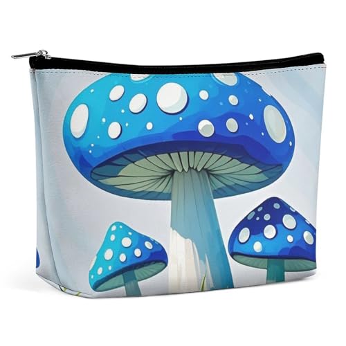 HJUQNGF Cartoon Blue Mushroom Cosmetic Bag Portable Toiletry Bag Large Capacity Travel Makeup Bags Beauty Makeup Organizer for Full-Sized Shampoo Conditioner Brushes Set Makeup Accessories
