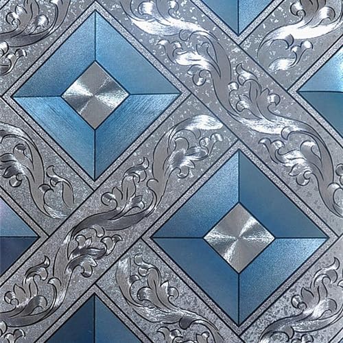 HimYKEA Modern Silver Foil Lattice Linger Mosaic Background Flicker Wall Paper Roll/Hotel Ceiling/Home Decorative Wallpaper Roll Silver Blue Colour 1.73'W x 32.8'L