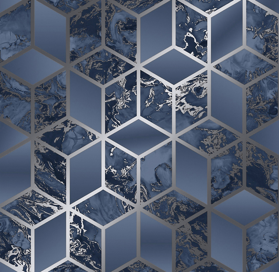 Fine Decor Navy Geometric Wallpaper Metallic Silver Blue Navy FD42608