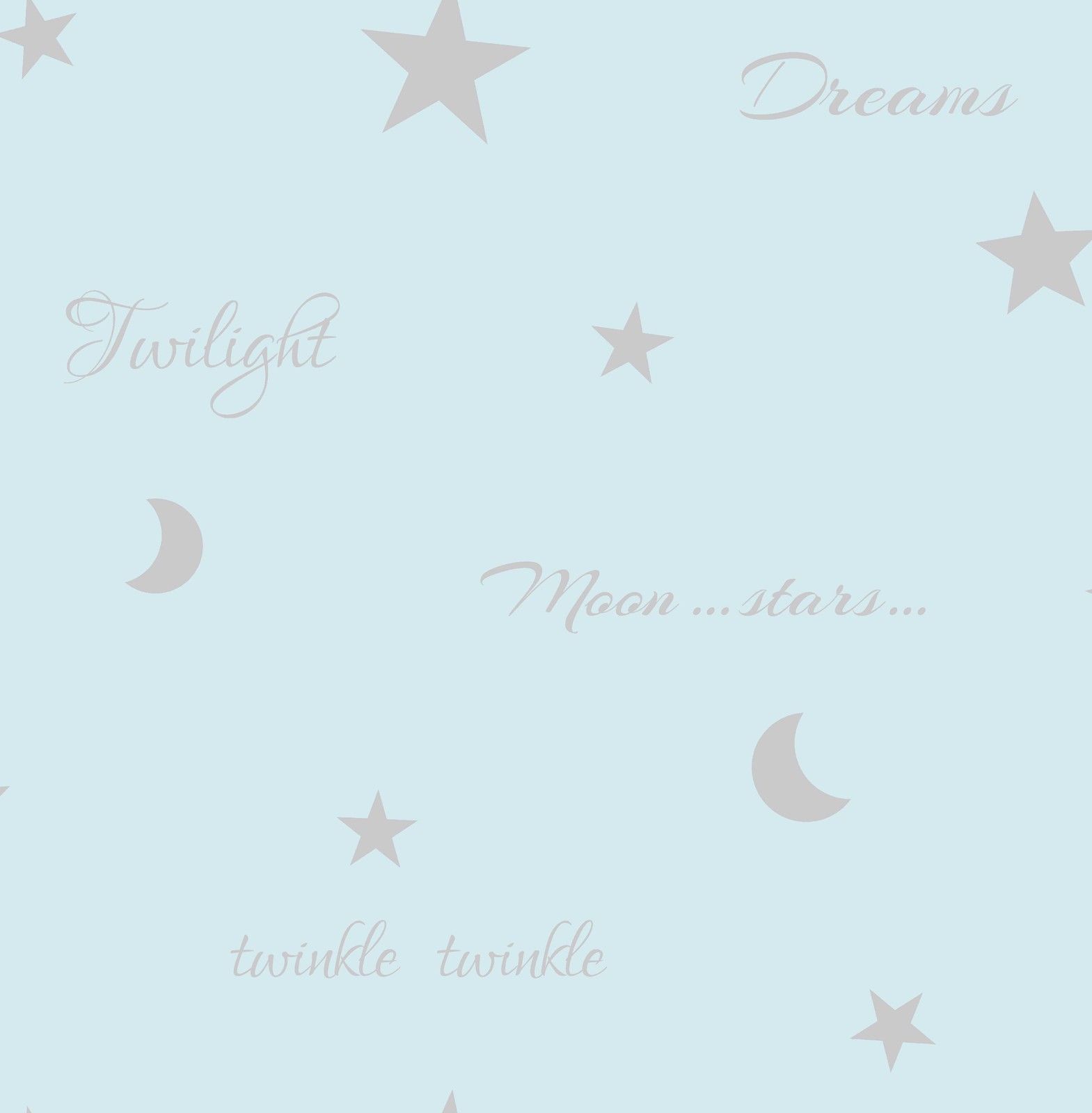 TEAL BLUE SILVER TWILIGHT MOON & STARS FEATURE WALLPAPER FINE DECOR FD40745