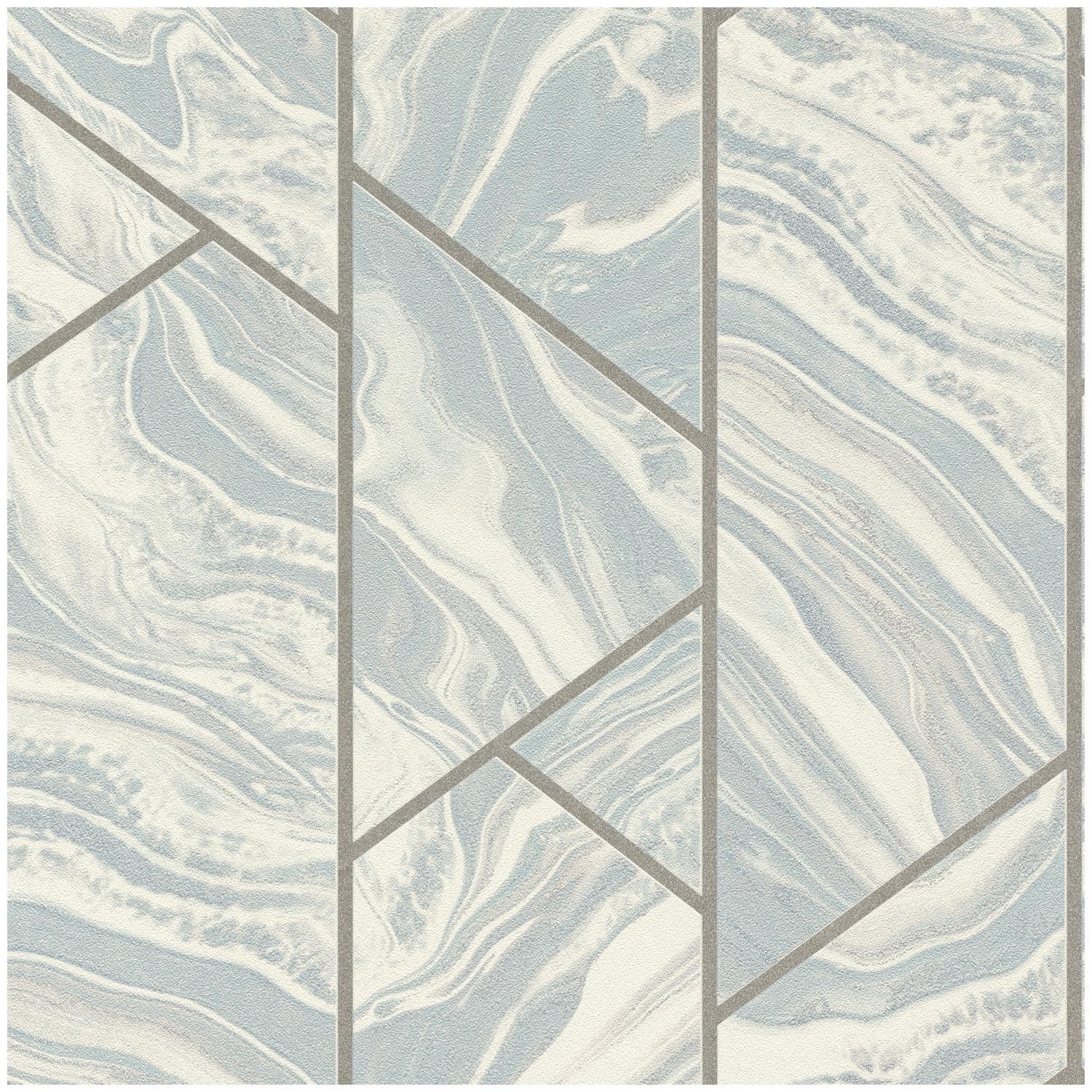 Marble Effect Wallpaper Blue White Silver Geometric Glitter Metallic Textured