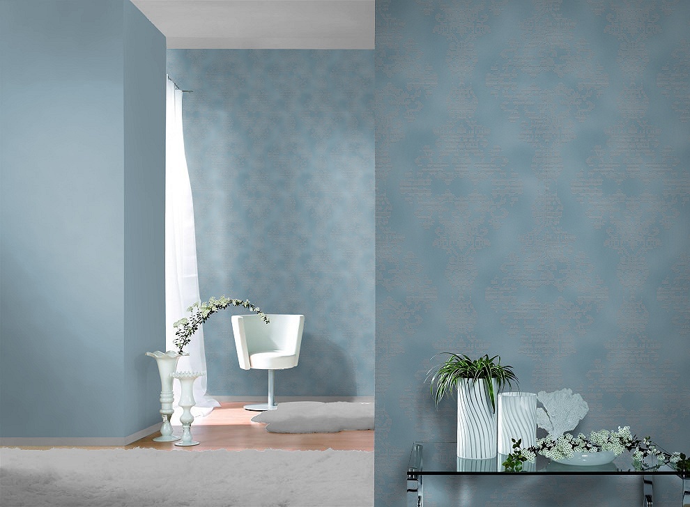 Plain Blue Textured Wallpaper Silver Metallic HeavyWeight Free Match Paste Wall