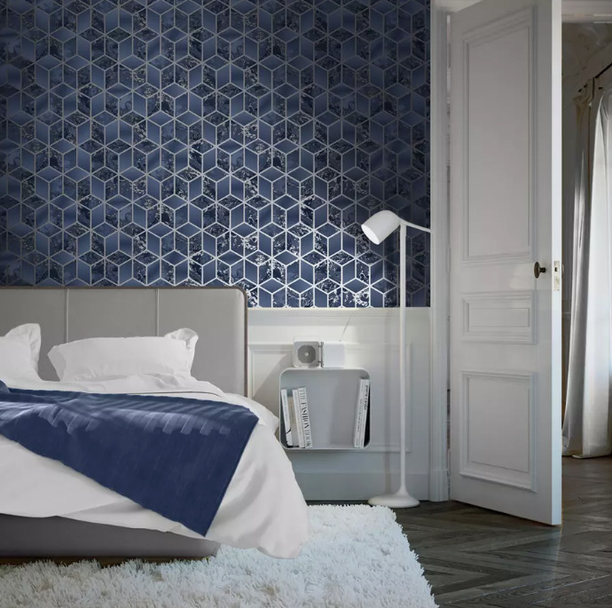 4 Rolls Blue Silver Tile Wallpaper Geometric Hexagon Metallic Tiles Feature Wall