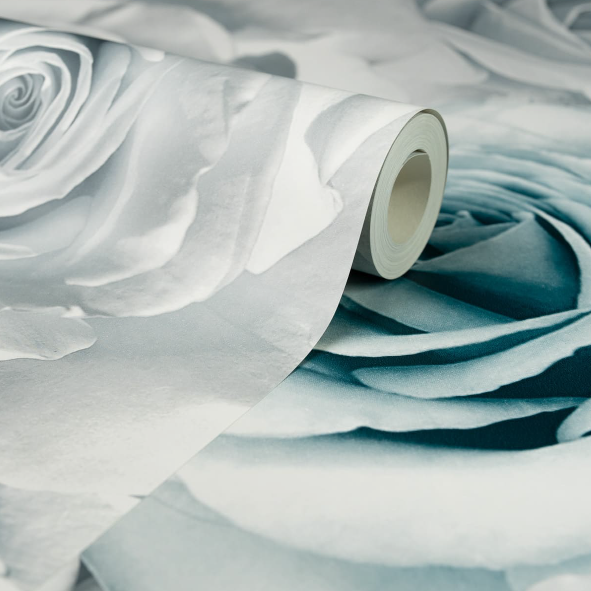 Muriva Madison Floral Flower Rose Bloom Blue Silver Grey Feature Wallpaper New